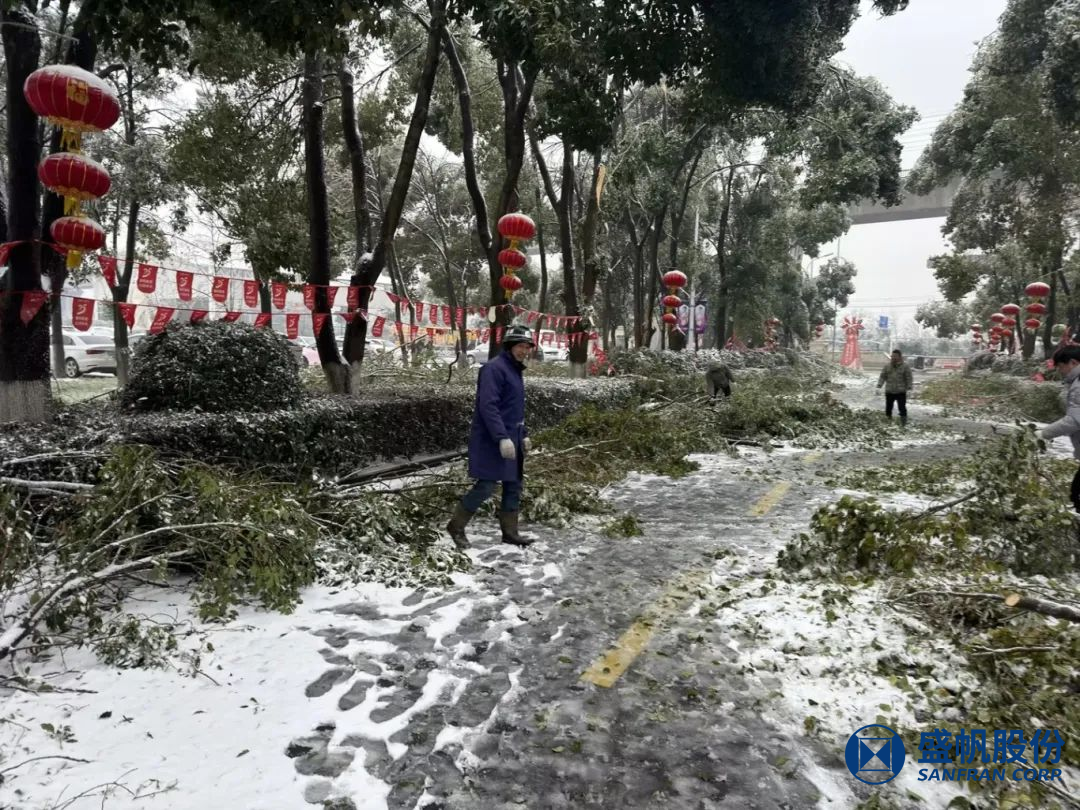 自2月3日起,由于連日來遭遇凍雨、降雪天氣,盛帆園區(qū)內(nèi)樹木倒伏、樹枝被壓斷,員工及家屬出行受到嚴(yán)重影響。