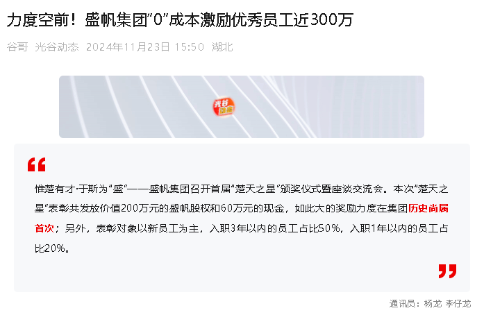 “沒(méi)想到剛?cè)肼毠疽荒耆齻€(gè)月,就得到了2000股股份和6000元現(xiàn)金獎(jiǎng)勵(lì)?!?1月21日,盛帆集團(tuán)00后員工謝志勇在獲獎(jiǎng)后連連···